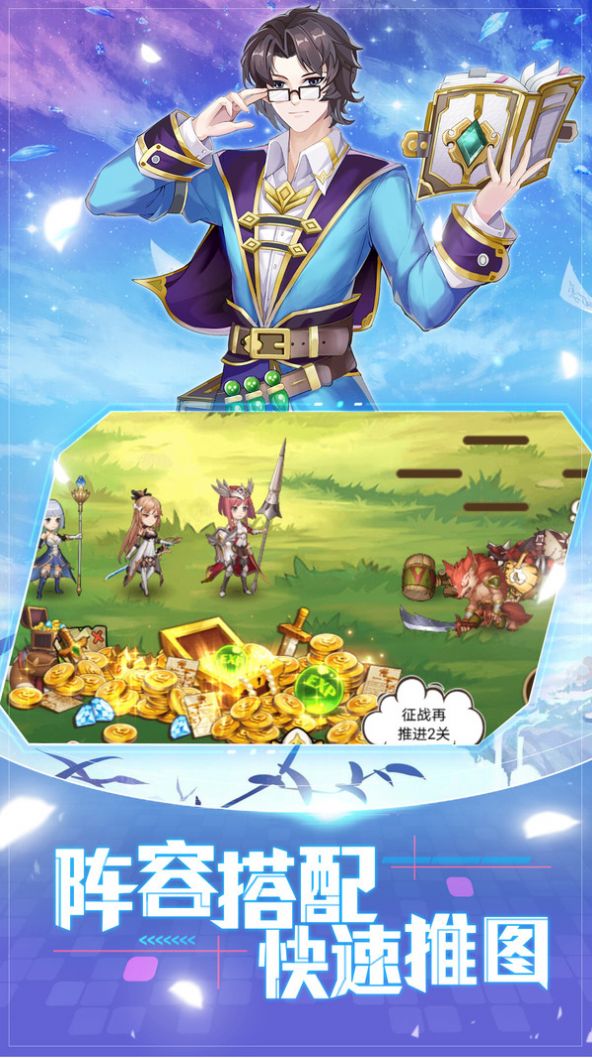 1、不同种族、不同英雄、不同属性,考验你的脑力的时候来了,通过英雄们的克制与加成实现高速推图。