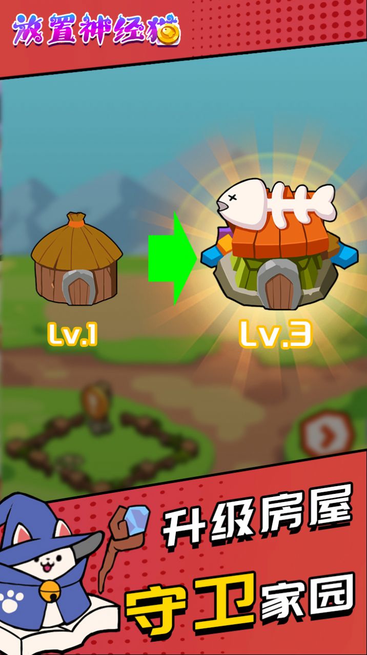 【放置神经猫】(上百种猫咪通过合成的方式即可获得,越是珍稀的种类越是不容易合成)「放置神经猫」你将进入一个奇妙的梦幻世界,在这个世界中到处都是猫咪,猫咪之间品种的比较更是大大拉开,你需要不断的培养出最高级的猫,最神经的猫也行。