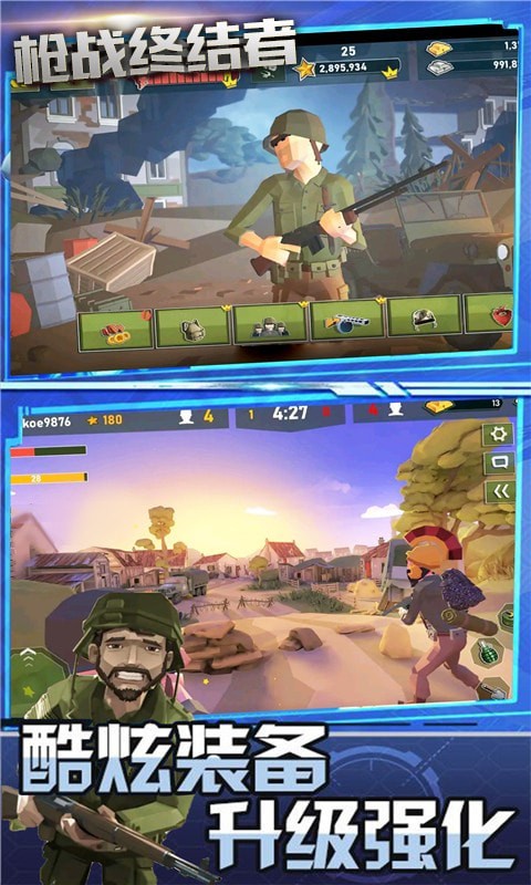 拥有着像素般画风的卡通画面,在游戏内去控制着自己的士兵在战场之中与敌人展开激烈的战斗,收集各种各样的装备来进行猛烈的打击。