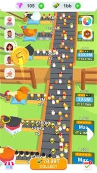 解锁更多类型的小鸡可以不断培养品种,生产大量的鸡蛋然后扩大自己的实力。
