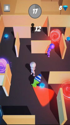 【躲猫猫之王】(你将与众多橡皮人在迷宫般的地图中进行一场躲猫猫追逐,被抓到就会被淘汰)「躲猫猫之王」你可以选择抓人或躲猫猫两种身份,带给你不同的游戏体验,当你是躲猫猫的身份时,你需要灵活的利用各种地形甩开追逐者,巧妙的利用环境来藏匿自己!