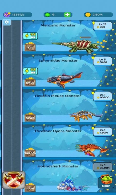 每个游戏都有不同的乐趣,玩家等级越高,能买到的海洋生物就越多,你可以尽情的PK,你玩一把就能让你爱不释手。