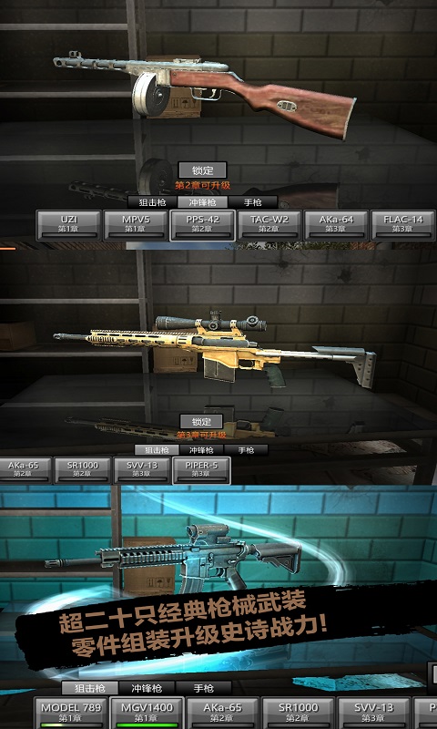 2、每一种武器都需要熟练的掌握,一枪致命才能够节约子弹,快速的消灭所有的僵尸。