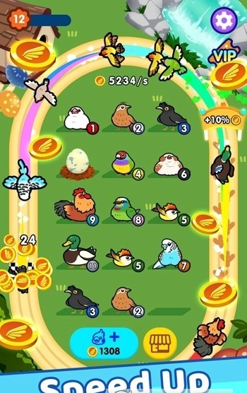 在游戏内拥有着很多不同品种的小鸟,玩家们将能够通过合成来使得自己获得更多全新的小鸟生物,对它们进行精心的照顾,能够健康的成长。