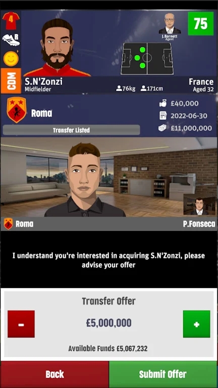 俱乐部足球经理2022玩家可以在这里得到许多不同的足球运动员,并不断训练他们,让进球变得更强,作为主教练,你需要合理分配俱乐部资金,你还可以聘请更加专业的教练赢得更多的足球比赛是非常重要的,快来下载打造属于你的一直超强战队,登上世界杯~