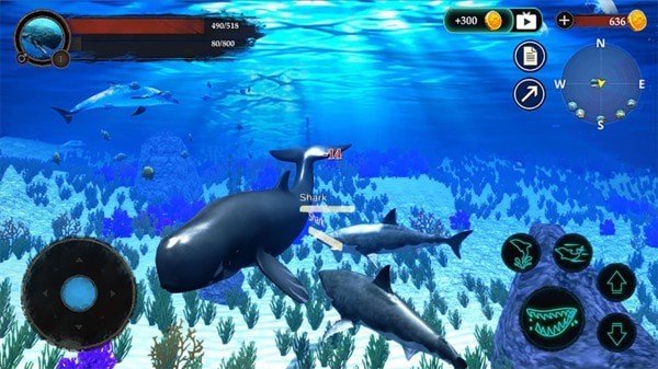 1、使用你的快速和强大的咬力来追捕更多的敌人,这里还有大量的隐藏任务模式可以安排的、鲸鱼和海豚。