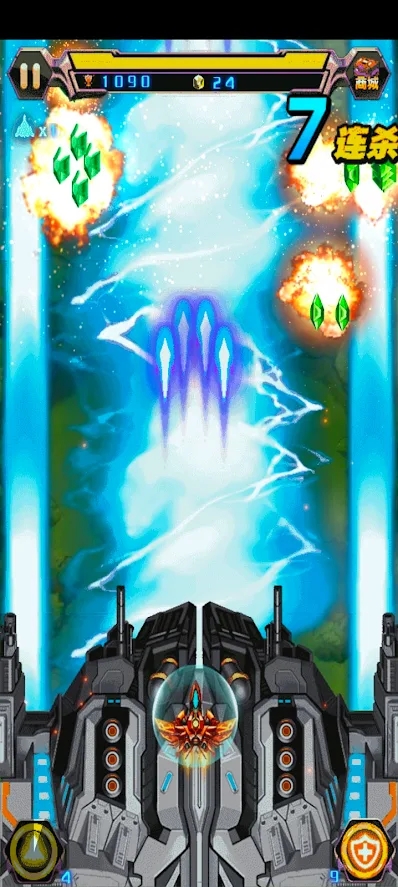 1、游戏的画面非常的清楚,战机的攻击特效也十分的炫酷。