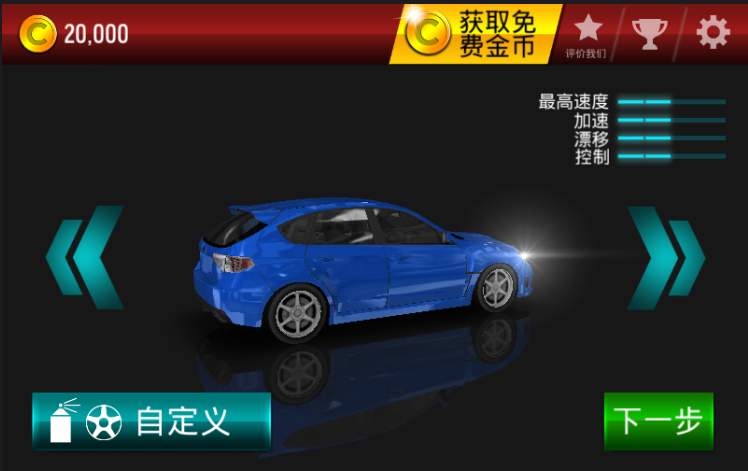 3、每局游戏结束后都会根据你漂移的距离和时间给与金币奖励
