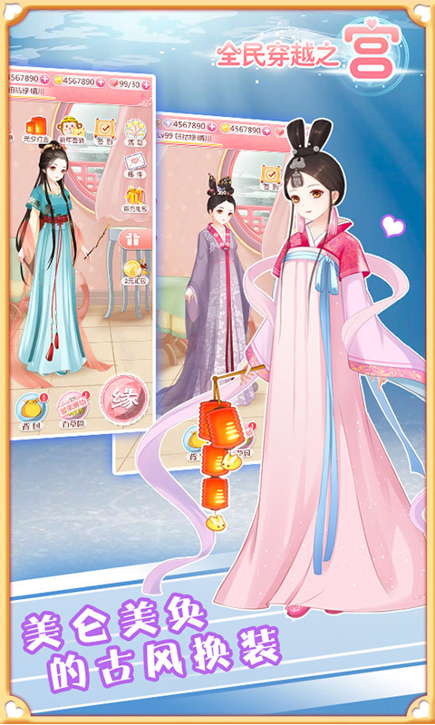2、结合了时下流行的穿越,换装,收集,古风,种菜,宴会互动等玩法。