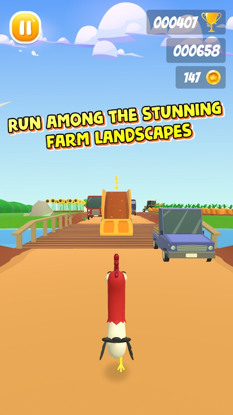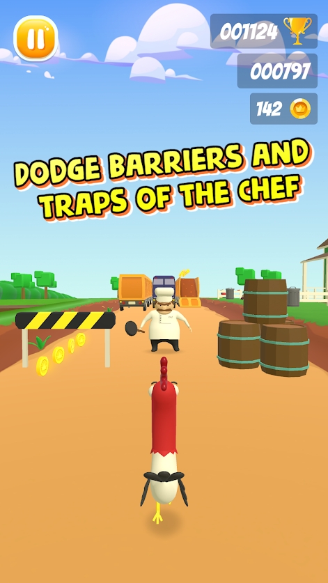 公鸡快跑游戏中到处都是障碍物,你在挑战过程中要小心谨慎,在这里,玩家需要控制一只公鸡来逃离厨师的魔掌,当你逃跑时,厨师可能回随时出现,玩家需要顺利闪避才能过关,如果你感兴趣,就来百家手游网下载,开启以场属于你的大逃亡吧~