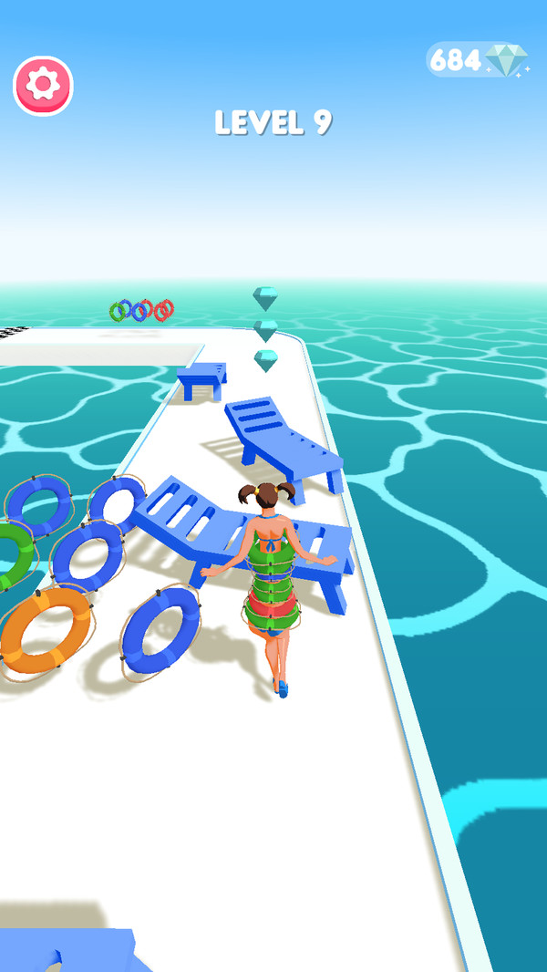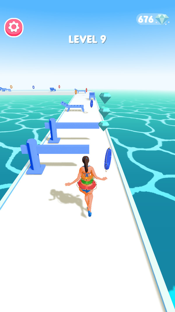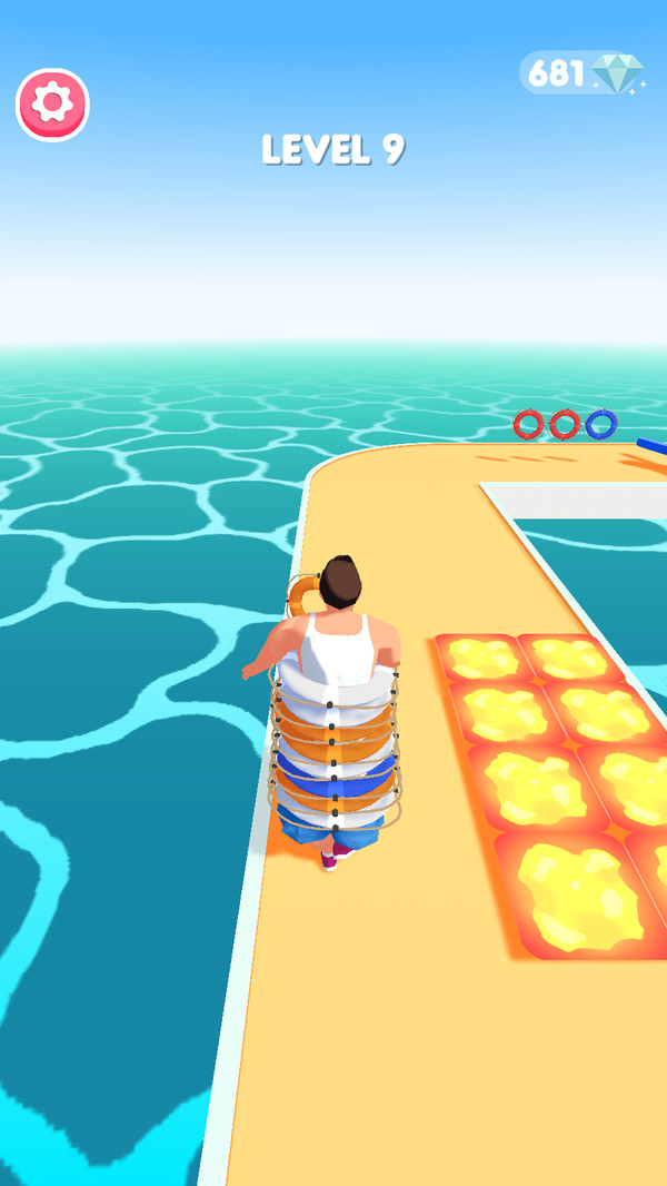 普通的收集跑酷游戏,玩家需要在跑酷的过程中收集足够多的游泳圈通过最终的数量要求才算闯关成功。
