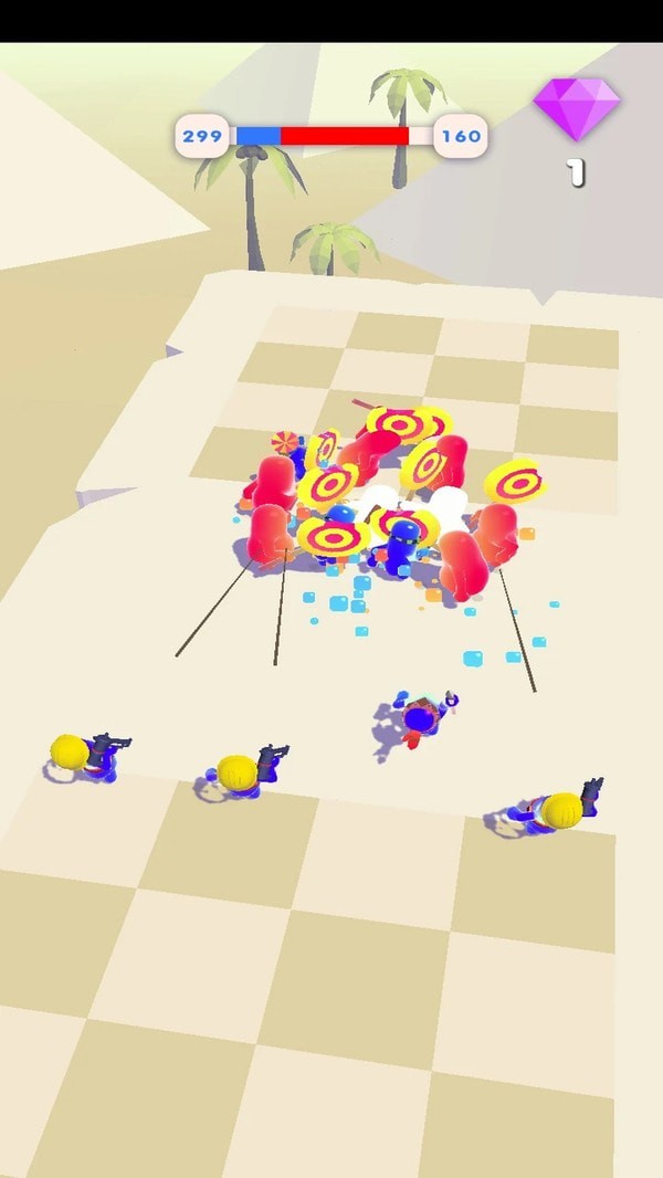 在游戏内上演一场极其魔性的果冻人大乱斗场面,控制着自己的角色在这里开始一系列的对战,可以使用武器来加强实力,成为最强大的存在。