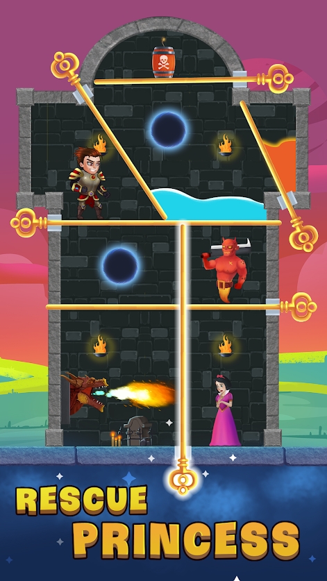 烧脑闯关的游戏,美丽的公主被困住了,作为英勇的骑士需要解救公主。