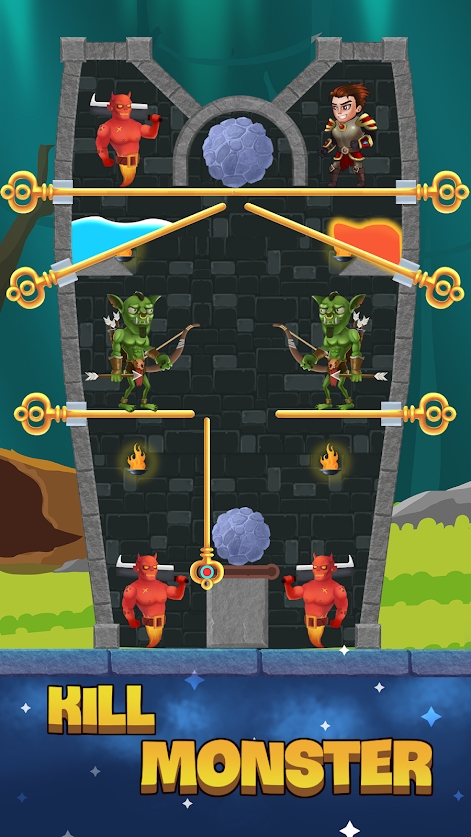 英雄别针拯救公主内的玩法十分的考验玩家们的思维脑力,你们需要通过拉针来破解其中的隐藏机关,经过自己的头脑思考最终能够顺利的解开所有的机关,使得里面被困的公主能够顺利的解救出来,而你也能够因此获得丰富的宝藏,成为出名的勇士,快来下载游戏挑战一下吧。