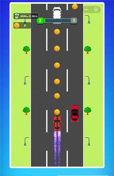 卡通风格的画面显示,以上帝的视角来控制着自己的汽车,在各个街道之中不断地前行,另外还可以去收集各种各样的金币来兑换赛车。