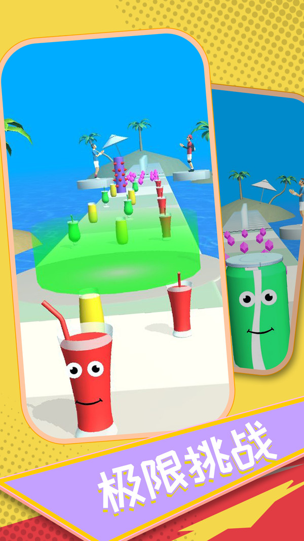 一路上玩家可以拾取与自己相同的饮料,让自己的饮料变得更巨大。
