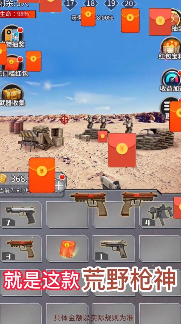 2、天降红包快速的射击领取,随机性比较的强,凭借自己的本事取胜。