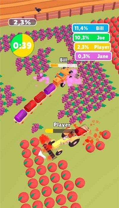 在比赛场地之通过控制自己的粉碎机来破坏这些植物,同时让自己的工具能够因此而变得更加巨大,有点类似贪吃蛇。