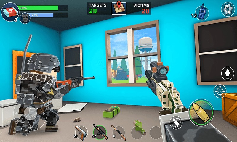 像素枪战狙击精英求生是深受玩家青睐的全新吃鸡风格射击游戏,玩家仔细的收集各种武器装备随心所欲的玩个不停,享受在枪林弹雨中冒险的刺激之旅,无论是城市战还是野外站好的掩体都是十分必要的,在像素枪战狙击精英求生里面想要获取最终的胜利,运气也是必不可缺的!