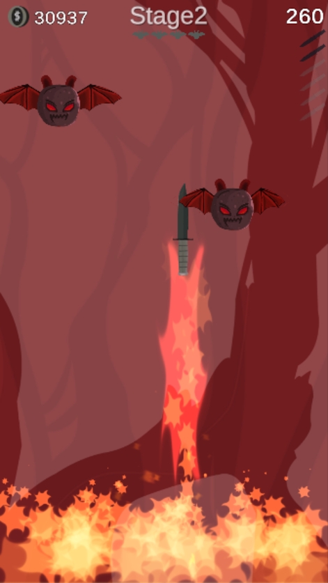 2、不断的投掷匕首命中更多的蝙蝠。