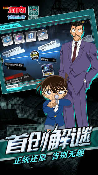 简单易上手的证物搜集玩法,分钟化身破案高手柯南全新破案旅程,指认幕后凶手,未知谜题,小兰和灰原哀等你营救
