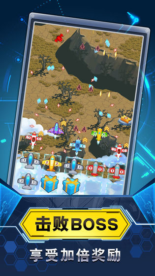 游戏中歼灭敌机就能获得金币以及各种资源,离线也能享受各种收益,炫酷的飞机随机合成解锁,击败BOSS奖励超级丰厚。