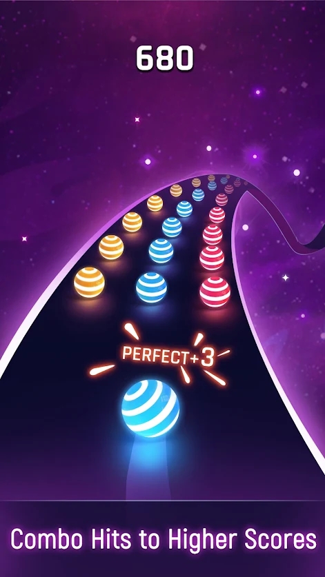 3、一款令人兴奋的音乐竞速游戏,通过听音乐,带领球冲向同色目标。