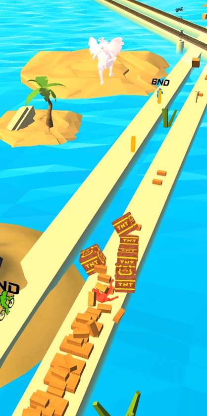3、玩家骑着自行车背部搬着地板,并肩沿途收集更多的地板让你成功的送往目的地。