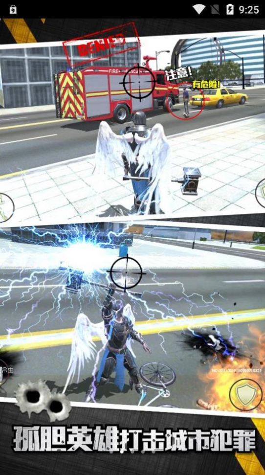 2、利用自己的特性技能招式,完成诸多精彩的战斗,当城市的居民发生求救信号你要第一时间抵达。