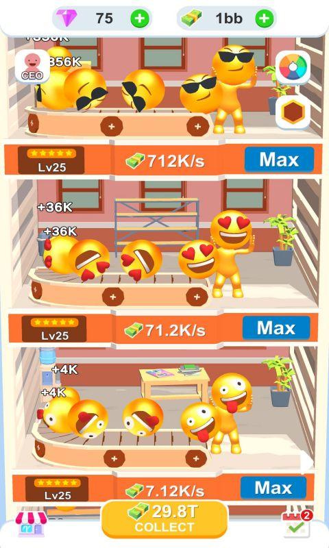 3、升级机器提高更快的生产效率,逐步建立一个炫酷的emoji工厂吧。