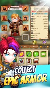 3、英雄升级,获得各种武器装备、饰品以及材料来强化你的军队;