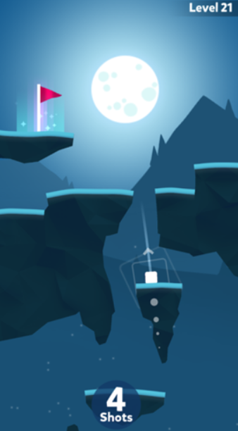 2、众多关卡设计,游戏地图非常有趣,一杆将小人击出,朝着山顶飞。