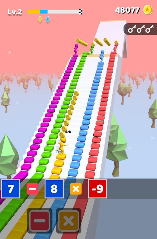 最大值计算竞赛是一款非常重视视觉体验的手机游戏,玩家在最大值计算竞赛里面操控小人不断地进行躲避,障碍物会让玩家计算怎么样的路线消耗最少,玩家需要收集同样颜色的道具来增加自己的层数方便进行之后的冒险闯关,多人竞速玩法模式更是能够给玩家带来无穷的乐趣,喜欢就快来下载试玩吧。