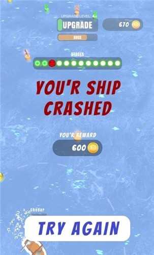1、滑动手指来控制战舰,收集漂浮的资源,在空闲的时间可以来升级船只的。