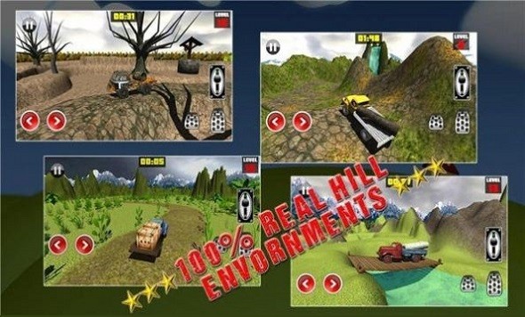 2、操控你的卡车在充满危险的山地中行驶,安全前进才是你对面目标。