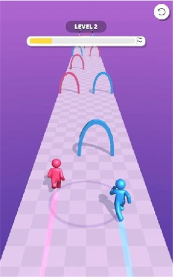 1、在跑酷的过程中,玩家需要根据角色对应的颜色冲破相同颜色的门。