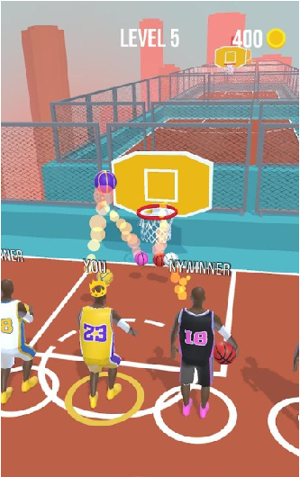2、当你的篮球只要进框就会前进,继续下一个投篮,直到率先走到终点就能赢得胜利。