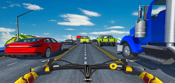 1、趣味精彩的驾驶操作游戏,控制你的自行车向前冲刺,躲避各种危险障碍物。