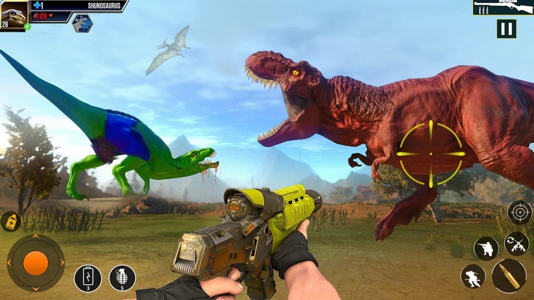 你将会使用各种强大的武器进行精彩的射击挑战,面对各种危险的恐龙也有生存的余地。