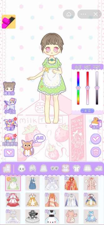 玩家在材质面板中点击各种衣服,为温暖的小公主搭配出新的造型。