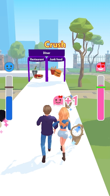 护送我的恋人支持两人同时挑战,每一关都会出现一对情侣,大家需要灵活地控制着它们在跑道之中前进,你的面前充满着许许多多的障碍物,需要大家小心的躲避,另外还有一些精美的道具需要你们拾取,当你顺利的抵达终点之后,这对情侣就能够亲吻在一起了,快来下载游戏试一试吧。