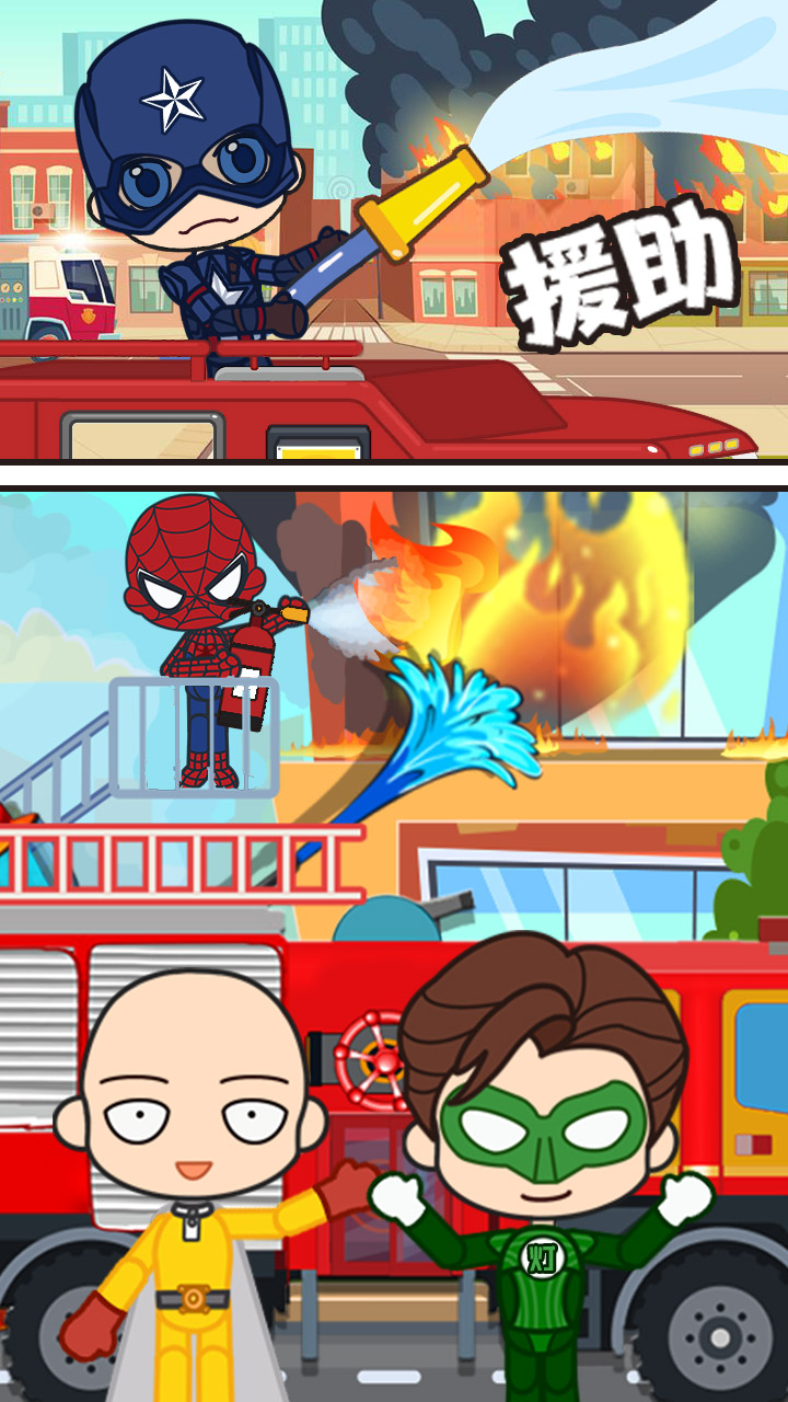 2、你们在这里面去选择你自己喜爱的超级英雄,让他们能够成为一名消防员。