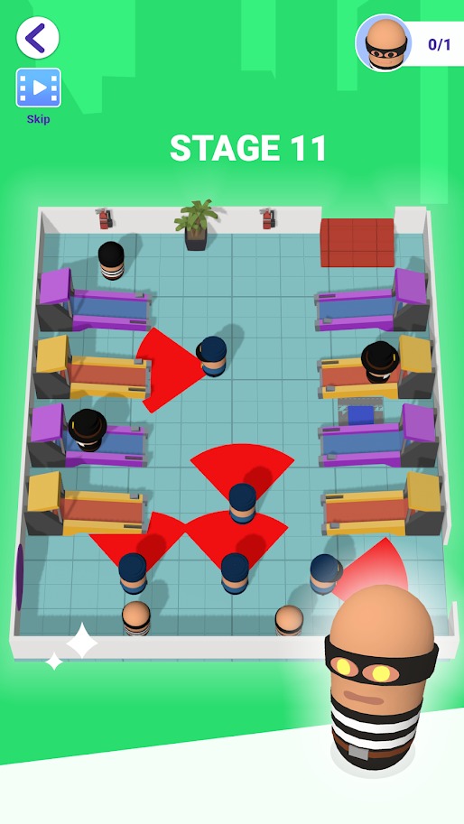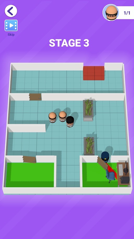3、简单操作技巧,只需要带领你的小偷转转转,就可以轻松获得胜利。顺利通关。