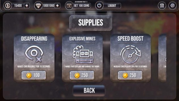 你可以去安装更厉害的武器来增加攻击力,瞬间摧毁对手的汽车。