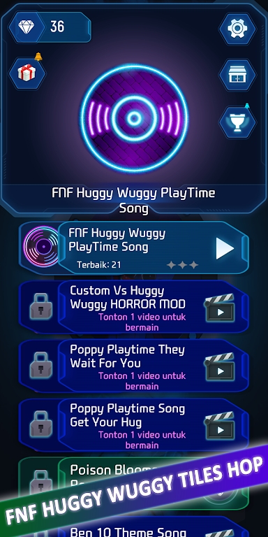 火球瓷砖跳(All FNF Huggy Wuggy Tiles Hop)游戏的关卡中玩家需要控制一个小球,一个接一个地跳到瓷砖上,游戏的背景乐库是十分的丰富,整个与欧系游戏玩起来很是不错,对于玩家来说,上手不是很难,让你的无趣时光变的精彩有趣,喜欢这款游戏的宝宝不要犹豫,快来下载体验吧~