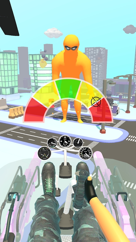 2、驾驶你自己的战机击败城市中的巨人,玩家可以解锁各种武器,帮助你击败巨人。