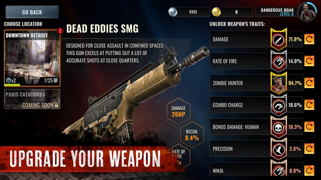 2、成为优秀的射手杀死更多的敌人,升级你的枪械完美击败更多的丧尸并获得更多的奖励。