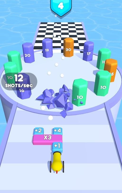 3、就是收集更多的乘数,让小炮可以发射出数百颗子弹,将障碍全部消灭,以冲锋到终点。