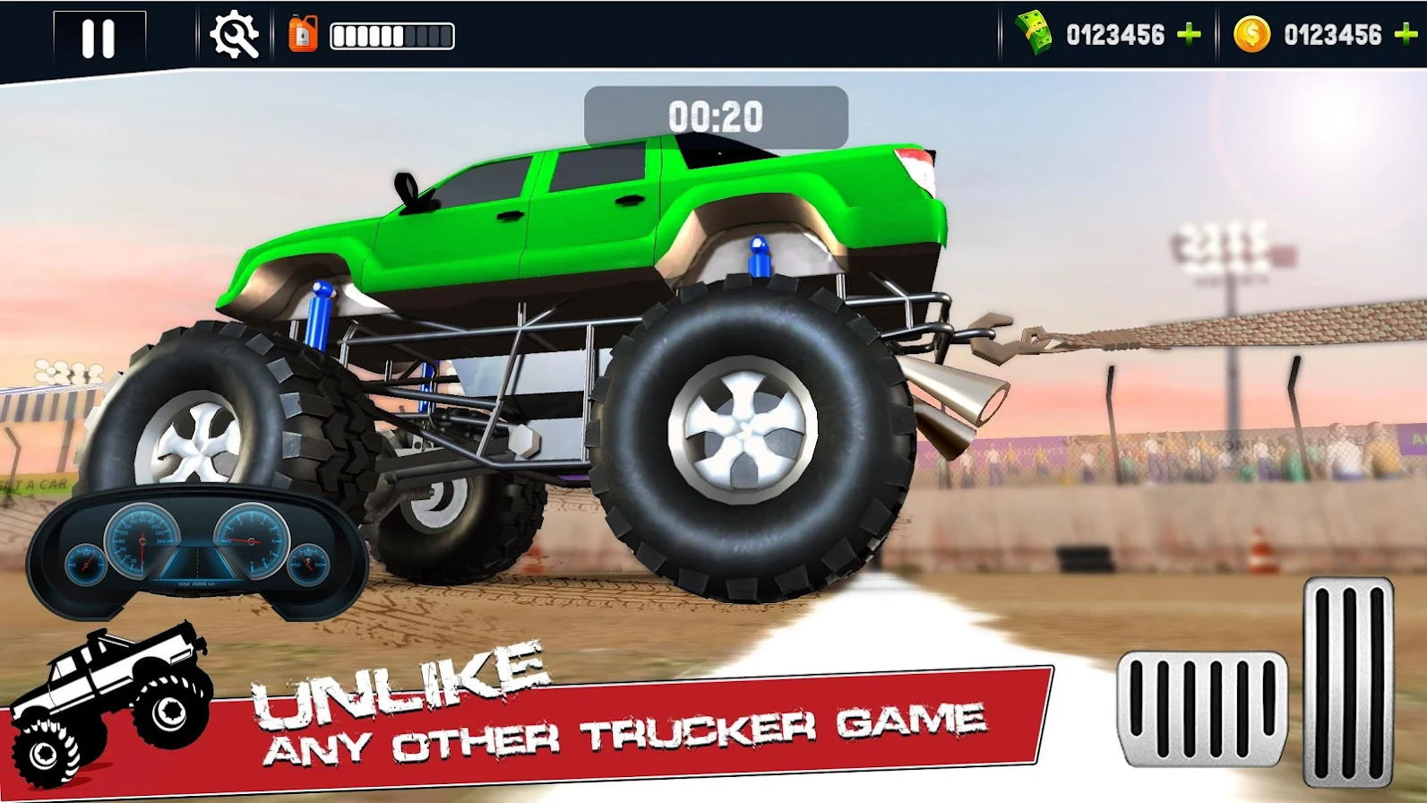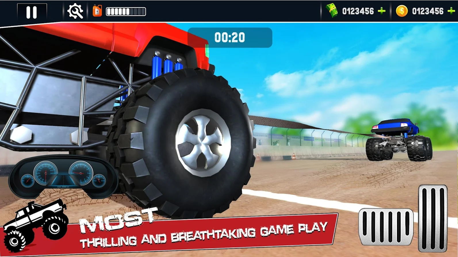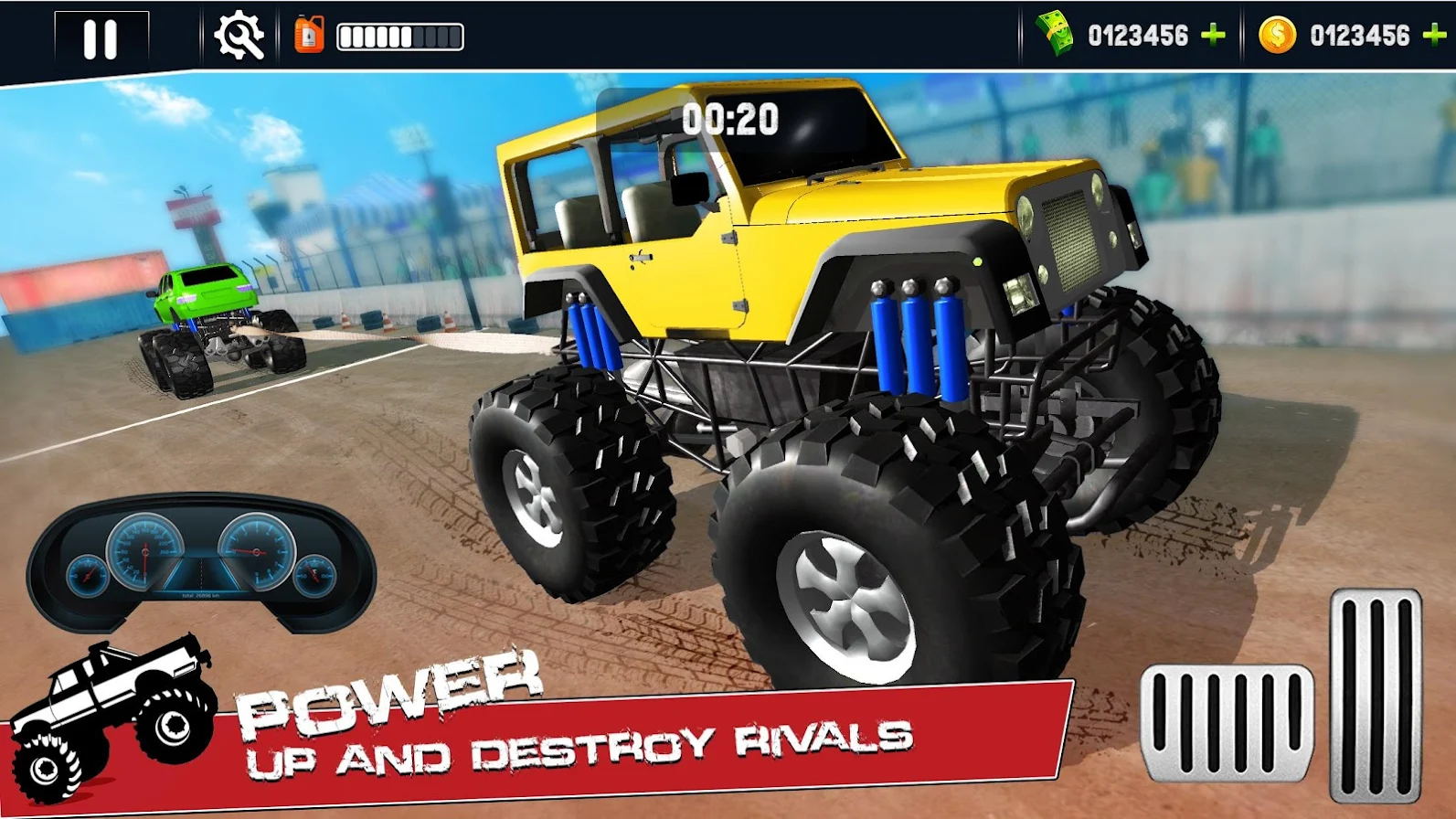 游戏中所有的赛车都是大脚车,玩起来十分的哇塞,很受欢迎,在游戏时会有非常刺激的体验,让你享受游戏的快感。