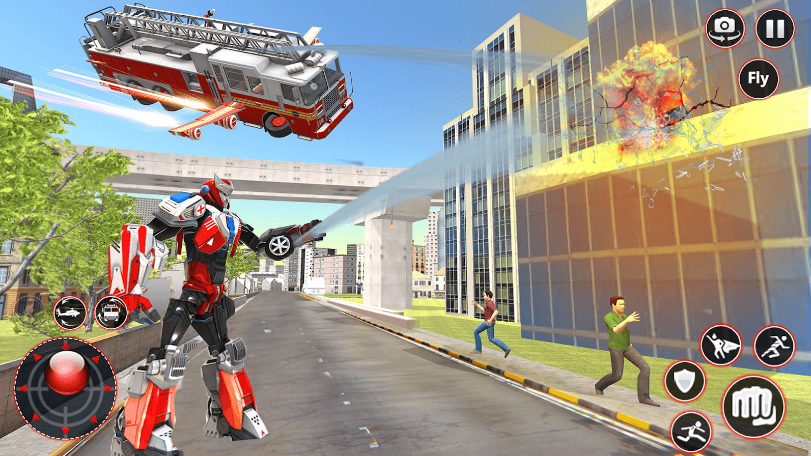 飞行消防员机器人是非常好玩有趣的手机游戏,3D技术打造的真实游戏场景能够给玩家更强的游戏代入感,每天登陆游戏都有全新的任务发布出来奖励多多最好不要错过,玩家在飞行消防员机器人里面控制十分灵活的机器人保卫城市的安全,完成所有的消防工作,整体的体验还是相当不错的。